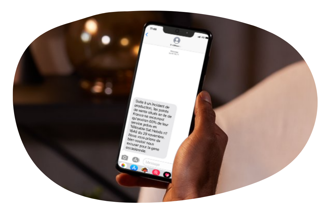 Fort d’une base de 6 100 numéros de portables de diffuseurs, vous pouvez choisir ce format pour neutraliser ou informer vos revendeurs d’un changement de dernières minutes, d’un incident réseau, d’un problème de CAB…